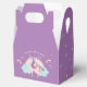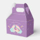 Personalized magical rainbow unicorn gable favor box in purple background. Girly, cute and fun.