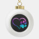 Purple Cyan Dog paw Print Heart Ceramic Ball Christmas Ornament