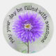Bright purple dahlia on a watercolor textured background with inspirational text.