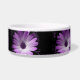 This awesome pet bowl features a beautifully detailed photograph of an African daisy flower. The photo has been digitally altered, resulting in a pretty purple coloured flower with different shades of purple on the petals and a dark purple centre.