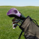 This awesome golf driver cover features a beautifully detailed photograph of an African daisy flower. The photo has been digitally altered, resulting in a pretty purple coloured flower with different shades of purple on the petals and a dark purple centre.