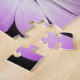 This awesome puzzle features a beautifully detailed photograph of an African daisy flower. The photo has been digitally altered, resulting in a pretty purple coloured flower with different shades of purple on the petals and a dark purple centre.