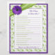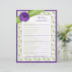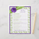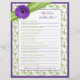 You can personalise the name on this purple gerbera (gerber) daisy and chartreuse (peridot) green floral and ribbon personalised bridal shower "who knows the bride best" game. You can change the text using the personalise options. The colours on this bridal shower game are dark violet purple and bright green... perfect for a spring or summer wedding shower.