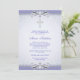 Elegant purple lavender damask with floral border and pearly white cross girl's first holy communion invitation template. This pretty lavender purple first communion invitation is easily customised for your event by adding your event details, font style, font size & colour, and wording. Please note - all of the stickers, cards and invitation designs you will find on Zazzle are printed graphics with no actual jewels, bows, raised, embossed, or added parts or pieces.
