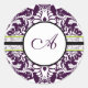 Purple Damask Initial Sticker Letter A Wedding