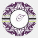 Purple Damask Initial Sticker Letter T Wedding