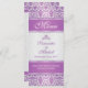 Purple damask pattern on a silver gradient background Wedding Menu Rack card.