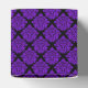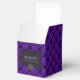 Purple Damask (Party Favour Boxes)-A dark purple and black pattern covers the entire background of the party favour box. On the front side is a decorative tag with a damask embellishment. I've placed two text areas for you to personalise with. I have written in the word GUEST and A little something just for you. Edit the text areas to say anything you like. If you do not want text, just DELETE it and remove the tag as well. That will leave just the damask background pattern. This design coordinates with other products in the store entitled: Purple Pearl Damask.