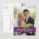 Purple Damask Wedding Photo Thank You Postcard
