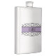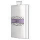 Elegant and classy Deco Flourish Flask featuring a fancy swirl purple border. Easy to customise, simply add personalised text in the text fields provided. Change the background colour to any colour you like. Click "Customise It" to find more personalisation options.