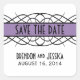 Elegant and classy Deco Flourish Save the Date Stickers featuring a fancy swirl lavender border. This stylish design is the perfect choice for announcing a vintage deco chic inspired wedding. Easy to customise, simply add your wedding details in the text fields provided. Click "Customise It" to find more personalisation options.