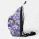 For flower and garden fans! This trendy crossbody sling bag with zippered pocket goes where you go when biking and hiking and features a photographic image of purple Delphinium blooms. A lovely, floral design!