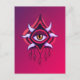 This evil demon eye weird poster is a mix of whimsy and darkness, featuring an intricate geometric design of an all-seeing-eye adorned with a weird yellow evil eye surrounded by horns, making it a cool design for people appreciating the gothic aesthetic, macabre and horror art. This dark fantasy with an occult vibe is in shades of red and orange.