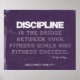 This fitness motivational poster on ripped purple denim features a fitness quote by motivational author Felicity Luckey. The exercise quote for fitness motivation reads: DISCIPLINE IS THE BRIDGE BETWEEN YOUR FITNESS GOALS AND FITNESS SUCCESS. ~ Felicity Luckey