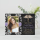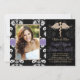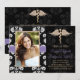 Add your photo or favourite picture to these elegant and formal black and white floral damask dental school graduation announcements and invitations with a gold single snake caduceus and printed lavender purple stitched ribbon look design for the graduating dentist. Customise it to say whatever you want on the back and front of these dentistry graduate graduation announcements and invitations. Artwork © Chrissy H. Studios, LLC. All rights Reserved.