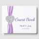 Elegant diamond heart with a purple ribbon decorate this guestbook. Wedding guest books are fun for both the couple and their celebrants. Invite attendees to leave you well-wishes at your reception, and you're guaranteed to have a keepsake to look back on for years to come. Plus, your guests will get to leave their mark on your event, not to mention put in writing whatever they didn't have a chance to express in person on the big day. Personalise the book by changing the text in the fields provided. You can change font style, size, and colour.