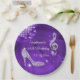 Girl's personalised, elegant custom 65th birthday party celebration paper plates. Beautiful purple/lilac/lavender templates for a woman's 65th year old birthday. These plates have a funky retro disco mirror ball, glamourous printed image rhinestones / diamonds glitter, sequins, jewels sparkle high heels stilettos shoes, and glittery musical note / music note with sparkles on a classy purple/lilac/lavender with white lights and sparkles background. Chic, cute, girly, modern paper plates with trendy, fashionable colours. These cool, groovy, stylish, sophisticated, pretty party plates are decorated / printed on one side only. Perfect plates for dinner dance dancing event parties. PLEASE NOTE: All products on Zazzle have flat printed images. If you need any assistance customising your product please contact me through my store and I will be happy to help.