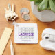 Bold letters spell out the word "LACROSSE" with the "O" replaced by a basket. The slightly distressed design makes a great personalised gift for a player, coach, team or fan. Personalise your name on the front and add a great action shot of your player on the back. Available in red, orange, yellow, purple, green, blue, black, maroon, and powder blue. Matching products available.