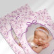 Share your exciting news with this hand drawn floral birth announcement. Featuring a cute floral background and big bow, this lovely card allows your newborn's photos to take center stage. The versatile back includes space for multiple pictures and a sweet message, making it perfect for use as both a birth announcement and a baby shower thank you card.