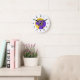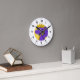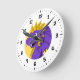 Clock with illustration of cute purple and yellow dragon girl / fairy-tale design for kids in yellow circle , design for kids by Maxi Harmony,