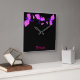 Customise this dragon clock with your name or other text. Three pink and purple dragons are arranged across the top of the clock on a black background. At the bottom of the clock there is an area to personalise the text in an old english style font. The text is in a coordinating shade of pink. I created this design to appeal to young women (think teenager) with both a darker side as well as a feminine side. This design merges both using simple vector graphics to make a bold statement.