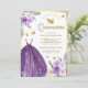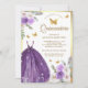 Purple Dress Floral Butterfly Gold Quinceanera Invitation