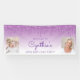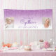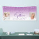 Welcome guests with this chic, glamourous 60th birthday party photo banner, featuring a sparkly purple faux glitter drip border and purple ombre background. Easily replace the two sample images with photos of the guest of honour. Personalise it with her name in purple handwriting script, with the birthday below in sans serif font.