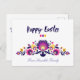 Happy Easter postcard with Purple and yellow Folklore composition inspired by polish folk-art from Lowicz region. The text on back page is fully customisable. All you need is to sign at the bottom and unique post card is ready to make someone smile.