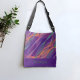 It's very roomy. The fabric is soft and flexible, and the strap is wide and adjustable to fit across the body. The printing is true to the photo.