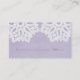 Simple and sophisticated Elegant Lace Wedding Place Cards featuring a white lace doily motif on a light purple faux vintage paper background. These classic and stylish escort cards are perfect for a rustic wedding. Space is given on these classy and stylish escort cards to write in the names and table numbers where each of your guests will be seated at your reception. Click on the "Customise It" button to find additional personalisation options.
