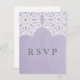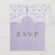 Simple and sophisticated Elegant Lace Wedding Response Postcard featuring a white lace doily motif on a light purple faux vintage paper background. This classic and stylish RSVP postcard is perfect for a rustic wedding. Easy to customise with your wedding details. Click "Customise It" to find more personalisation options.