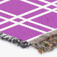 A quality printed throw has its advantages. This is a much finer weave throw than its loopier cousins, and though lighter, it is worth the investment for custom room accessorizing. The back is much prettier than the typical brown, and the fringe on the long sides very vivid, the selvage nicely done. Before photographing, I washed the throw in cold water, delicate, with a thicker woven throw the same size. On tumble dry low, this throw was dry in half the time as the other. This is a very practical quality if you use throws for furniture covers or to wrap up in frequently. The sleekness of the fabric makes it a great layer for accenting or protecting without the feeling of sitting on too much stuff. Perfect for napping or when you feel a light chill coming on. The color printing is beautiful and on this fabric, matched the design and color of my Photoshop image. This is an advantage for blending room fabrics and colors. The fringe on the short sides prints the colors from the design image and therefore varies from the side fringe. I streaked a white fractal line through the plaid pattern to give the illusion of weaving. This printed as crisp as an illusory thread, and put some white in the short side fringe, showing another advantage of print vs loomed- for artistic purposes, line lines, detail, and color integrity can be planned and preserved. My loomed throws have color limitations and more of a needlepoint texture. Print throws reproduce an exact image. The throw felt a little stiff straight out of the package, but this went away in the first delicate wash. Of course I searched the wash water for ink or bleeding and there was none.
