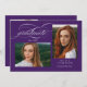 Purple Elegant Script 3 Photo Graduation Party Invitation features a beautiful and elegant script overlaying your photo. Your party details and photo are on the back.