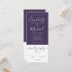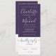 An all in one wedding invitation featuring modern signature script names and elegant typography on a purple background. The invitation includes an RSVP card that can be cut off and guest information details. Designed by Thisisnotme©