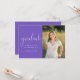 This graduation invitation features a purple background to represent your school colours. Add a photo and customise text on the front and back to include all details for your graduation party. This invitation is available in a variety of different colours. Visit my graduation collection to view all options.