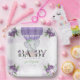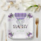 Purple Baby Shower paper plates. Elephant Hot Air Balloon Baby Shower party decorations with pretty purple watercolor florals. Add a whimsical touch to your baby shower with these Purple Elephant Baby Shower Paper Plates! Featuring an adorable baby elephant floating in a pastel hot air balloon with pretty purple florals, these plates bring a dreamy charm to your celebration. The soft purple and lavender hues make them perfect for a baby girl shower, a gender-neutral event, or any sweet-themed celebration.