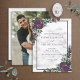 Create the perfect fall or winter wedding invitation with this trendy design featuring plum purple and emerald green floral and fern botanical elements, plum purple frame and faux carrera marble background. The back of the invitation features your favourite engagement photo. Contact designer for matching products. Copyright Elegant Invites, all rights reserved.