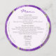 Wedding Menu Card with elegant bouquet from purple eustomas flowers and light green leaves, pastel coloured spring or summer softness romantic floral eustomas rose flowers. Botanical digital watercolor painting. Floral blossom botany Wedding Menu Card. Purple Eustomas Collection.