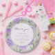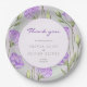 Wedding Thank you Paper Plates with elegant bouquet from purple eustomas flowers and light green leaves, pastel coloured spring or summer softness romantic floral eustomas rose flowers. Botanical digital watercolor painting. Floral blossom botany Wedding Thank you Paper Plates. Purple Eustomas Collection.