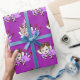 A beautiful hand drawn whimsical folk art style fairy with a purple dress gift wrap for a little girl's birthday.