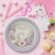 This pretty purple fairytale castle design features blush pink and purple flowers framing your custom text.