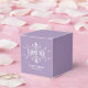 Simple and elegant Fancy Ornamental Wedding Favour Boxes in lavender and white featuring a sophisticated art deco style ornamental flourish border. Easy to customise, simply add your wedding details in the text fields provided. Click "Customise It" to find more personalisation options.