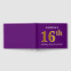 This guest book design features the ordinal number "16th" with a faux gold-like appearance. It also features a personalised name, and a purple coloured background. It could be used at a party for somebody celebrating their sixteenth birthday. [~Z0000057]