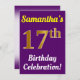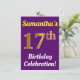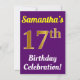 Purple, Faux Gold 17th Birthday Celebration + Name Invitation