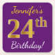 Purple, Faux Gold 24th Birthday + Custom Name Square Paper Coaster