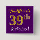 Purple, Faux Gold 39th Birthday, With Custom Name 15 Cm Square Badge
