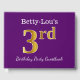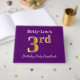 This guest book design features the ordinal number "3rd" with a faux gold-like appearance. It also features a customised name, and a purple coloured background. It could be used at a party for somebody celebrating their third birthday. [~Z0000057]