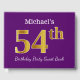 This guest book design features the ordinal number "54th" with a faux/imitation gold-like appearance. It also features a customised name, and a purple coloured background. It could be used at a party for somebody celebrating their fifty fourth birthday. [~Z0000057]