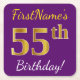 This simple paper coaster design features a message like "FirstName’s 55th Birthday!", with the "55th" having a faux/imitation gold-like colour appearance, on a purple coloured background. The name can be customised. Personalised paper coasters like these could perhaps be used at a birthday party for somebody who is celebrating their fifty fifth birthday. [~Z0000197]