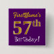 Purple, Faux Gold 57th Birthday, With Custom Name 15 Cm Square Badge